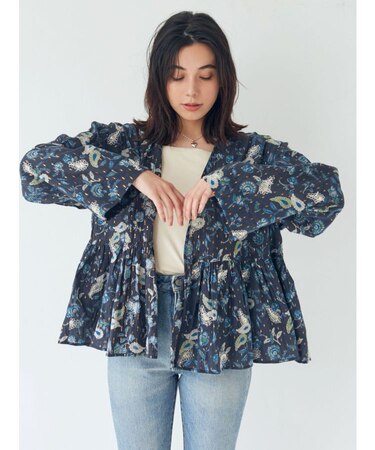 胸下の切り替えで程よく広がるシルエットやスリーブのワイドシルエットも女性らしくラフに着て頂けます。