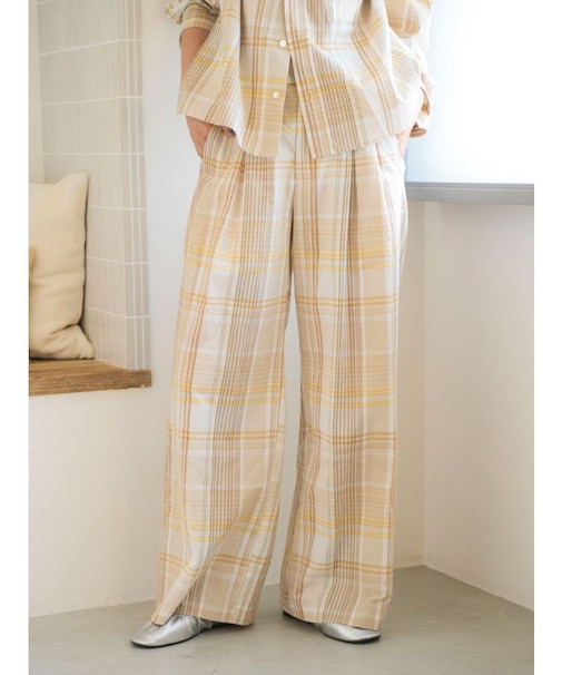リネン混チェック柄パンツ