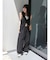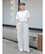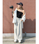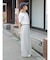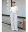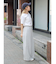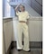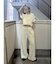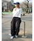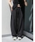 ずるっとしたサイズ感ですが、ウエストのタックと裾にかけて内側に入れている脇線のデザインがすっきりした印象を演出。