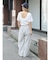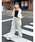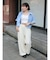 ウエスト紐もあえて外だしにすることで、ラフな雰囲気に。