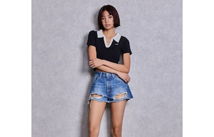 ショート丈なので、ハイウエストボトム合わせがスタイルアップになります。