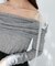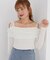 肩紐のレースリボンディテールでフェミニンさとトレンド感を取り入れた大人ムードを叶えるオフショルダートップス。