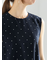 ハリのある麻調の素材を使用しているので、肌離れのよくさらっとした着心地です。大人っぽいドット柄で着回しがしやすいアイテムです。