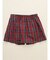 前開きのトランクスです。先染のチェック柄デザインです。ウエストはソフトゴム、低めの前開き位置で使いやすい設計、動きやすいスリット入りで、締めつけ感が苦手な方におすすめ。