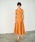 リネンライクな合繊素材でお作りしたノースリーブブラウス。