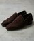 甲革に足あたりの柔らかいスエード革を使用し、履き心地を意識した、東京浅草の工場で製造されたコインローファーです。