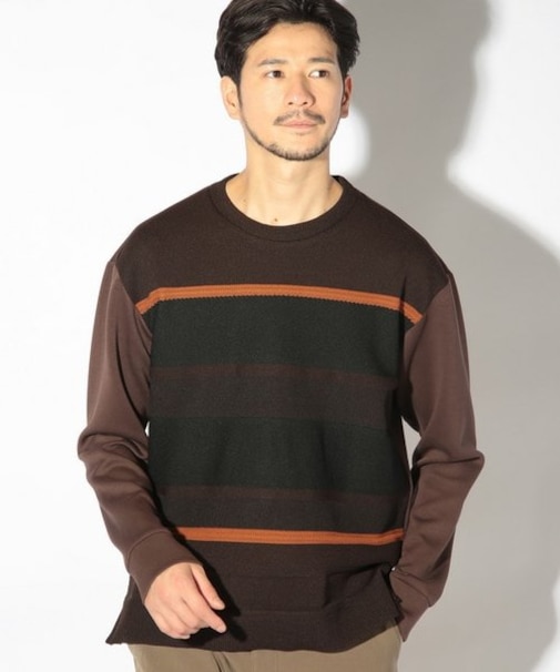 ストレッチ性に優れたPBT糸を使用したボーダー柄クルーネックスエット。
