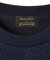 衿元は編み立てリブ仕様で、裏側に配色カラーを施し、さりげないアクセントをプラス。異素材の切り替えデザインが一見シンプルながら、独自のエッセンスで洗練された印象も与えてくれます。