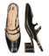 ダブルストラップのデザインが特徴的なバックバンドパンプスは、程よい高さのチャンキーヒールでカジュアルになり過ぎず、安定感がある履き心地も嬉しいポイント。