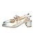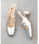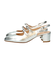 イタリア パンプス/ダブルストラップ/ミドルヒール/チャンキーヒール/シルバー/安定感ヒール/パーティー