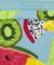 爽やかなターコイズブルーの背景に、鮮やかなトロピカルフルーツをハンドペイント風で描いたプリントデザイン。カラフルで持つだけで気分も上がるギフトにもおすすめのアイテム。