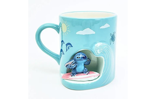 フィギュア付きで個性的!スティッチのサーフィンマグカップ。