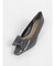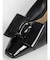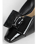 艶のあるラバー素材をリボンとつま先にデザインしメリハリのある一足に。