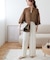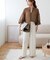 裾にスリットが入っているので、ワイドパンツや広がり感のあるスカートと合わせても形が崩れにくいのもポイント♪