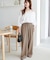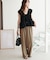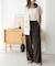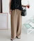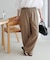 ・フロントに施したギャザーがマイナス3キロ見えを叶えるイージーパンツ。