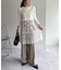 2種類のレースを横や縦使いに変えたことでより異素材感のある仕上がりに。これ一枚取り入れるだけでコーデが一気に華やかになります。ヴィンテージ感を引き立てる紐の素材と金具もポイント◎バックゴム仕様になっているので着脱もしやすく、ストレスフリーの着心地です。