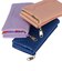展開は2つ折り財布2種、長財布、ミニバッグの4型で、それぞれピンク、ネイビー、ラベンダーの3色展開になります。