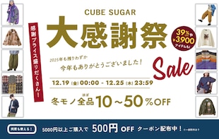 着ているだけでほっとする。 肩肘はらずに等身大でいられる。 だけどその時流(とき)の気分もきちんとあじわえる。 そんな「CUBE SUGAR」のLife Styleを提案します。 他にも、CUBE SUGARの持つ価値観をベースとした商品に、よりトレンド感を加え、手頃な価格帯でCUBE SUGARの妹的存在の「cube sugar evo.」、ヴィンテージならではのリアルな雰囲気をアメカジベースに、そして遊びの効いたデザインに落とし込んだ「TOBILA」など「レディースアメカジ」を基本とした商品展開のショップです。