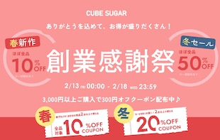 商品発送時に同梱させていただいております「お買い上げ明細書」をCUBE SUGARの店舗にお持ちいただきますと、お買い上げ金額1%分のCUBE SUGARポイントを付与させていただきます。