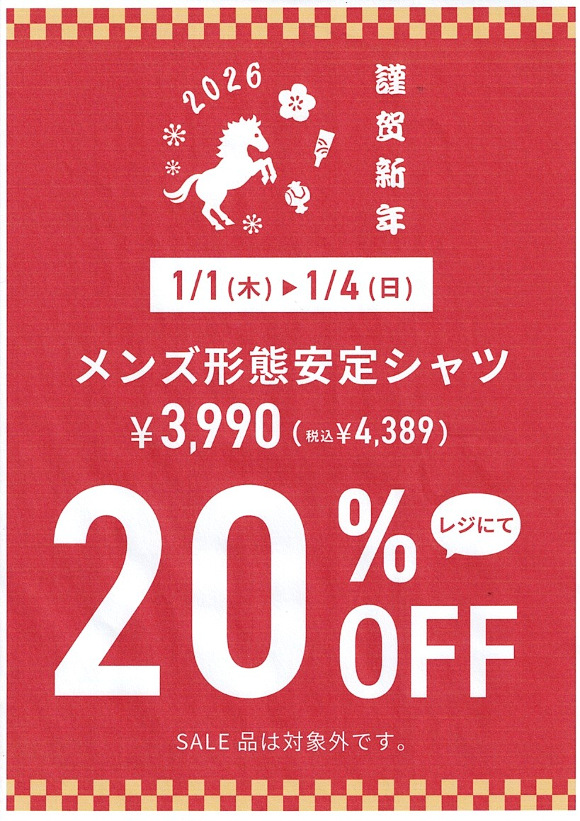 Men's wrinkle-resistant shirt (¥4,389 tax included), 20% off at the register!!