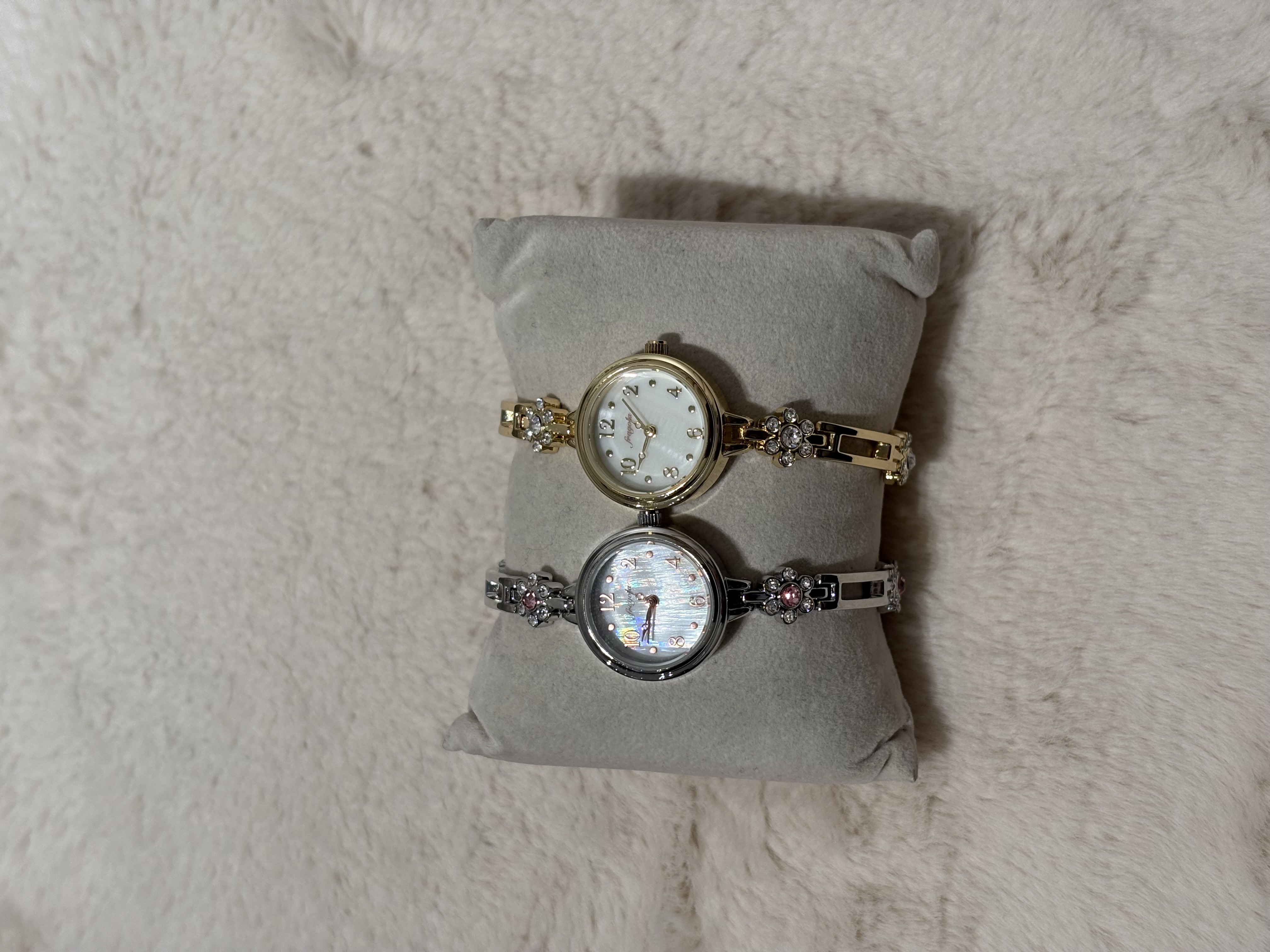 The dial has a soft, lustrous finish, creating a feminine look on your wrist.