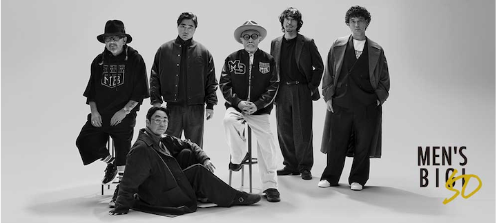 50周年を迎えるMEN’S BIGI。創業者 菊池武夫との限定コラボ商品やクリエイティブディレクター・中田慎介氏とのコラボ商品など、50周年特別アイテムを多数展開しております。
