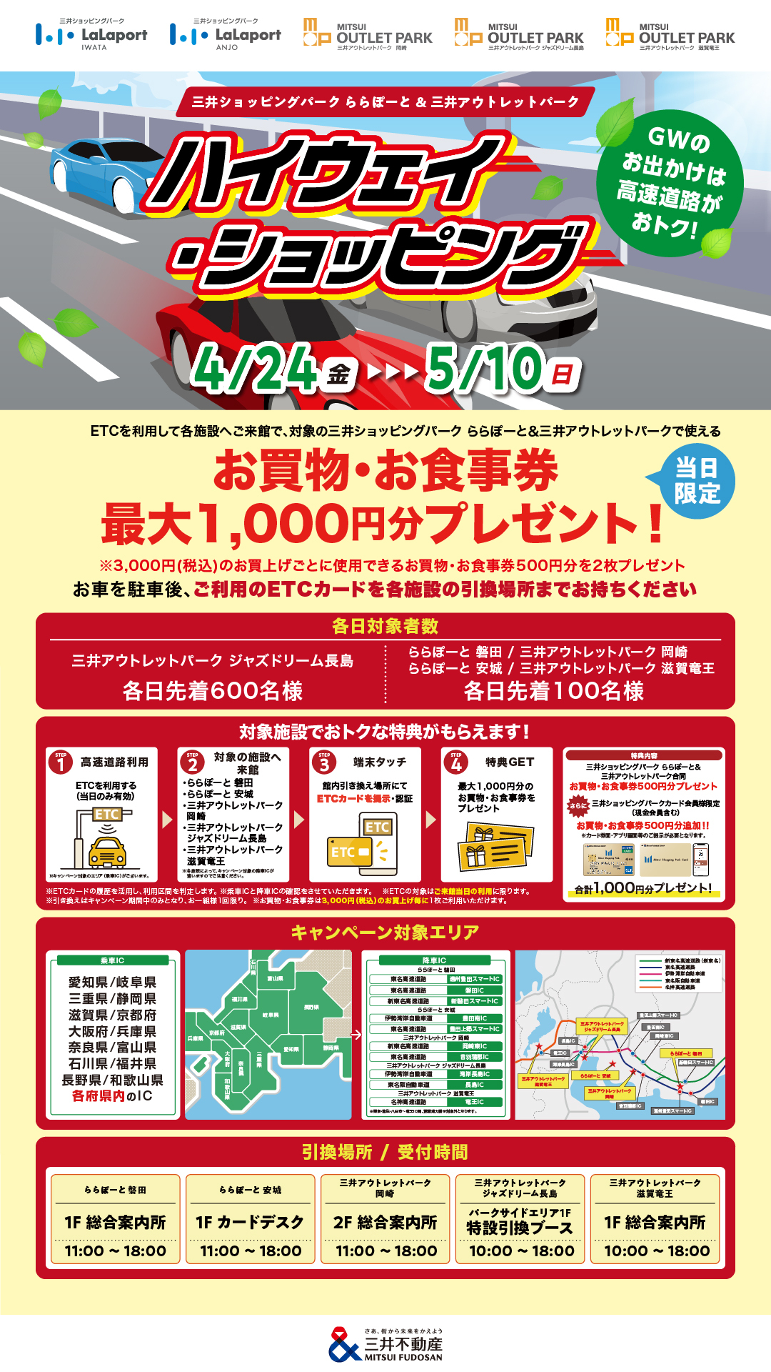 - Mitsui Shopping Park Members Program: Win amazing prizes! Spring "Choose Your Own" Gift Campaign