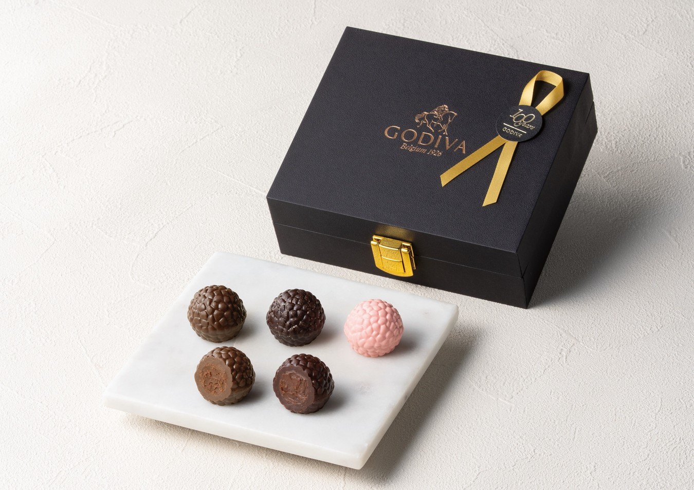 Cocoa is a jewel nurtured by the earth. To celebrate GODIVA 's 100th anniversary, five world-renowned star chefs have created limited edition truffles, each imbued with their deep love for cocoa and each crafted with their own unique sensibilities. Each truffle is imbued with the deep flavor of the cacao, embodied in the sensibility of each star chef. Packed in a chic box reminiscent of a jet-black truffle, they are presented as a special assortment of five truffles.