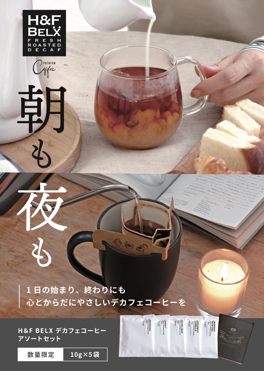 - Delicious decaf coffee assortment set for morning and night