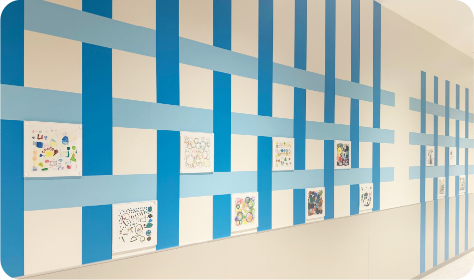 3Fのトイレに向かう通路は、地域の方々のギャラリーとして、様々なアートを展示していきます。