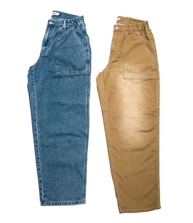 The bottoms are 12-ounce heavy painter pants based on a masterpiece archive piece from the 90s. While reproducing the rugged details of the time, the trendy wide tapered fit gives them a modern feel.