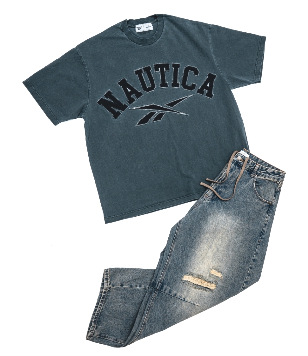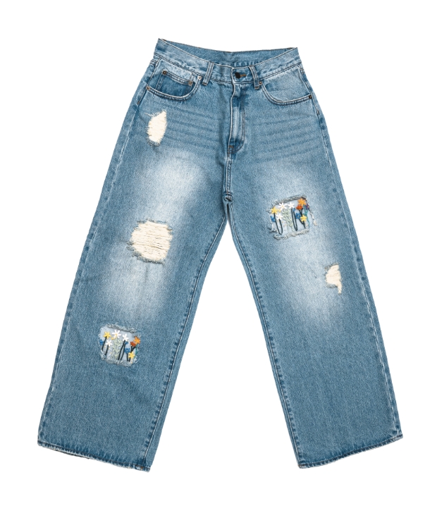 The pants to pair with this are authentic denim made from durable US cotton. They offer comfortable wear all year round, and the high-waist design creates an excellent leg-lengthening effect.