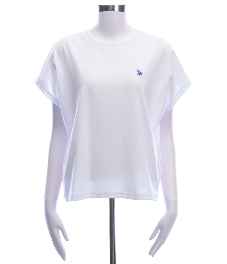 A logo adds a subtle touch. This French-sleeved T-shirt also covers the upper arms.
