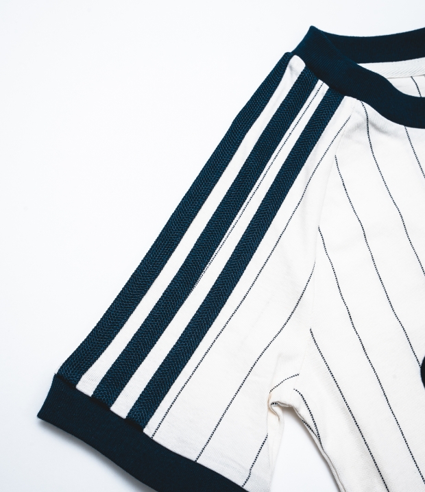 This vintage-inspired short-sleeved shirt is made from a heavy-weight jersey fabric that has a crisp, firm texture.