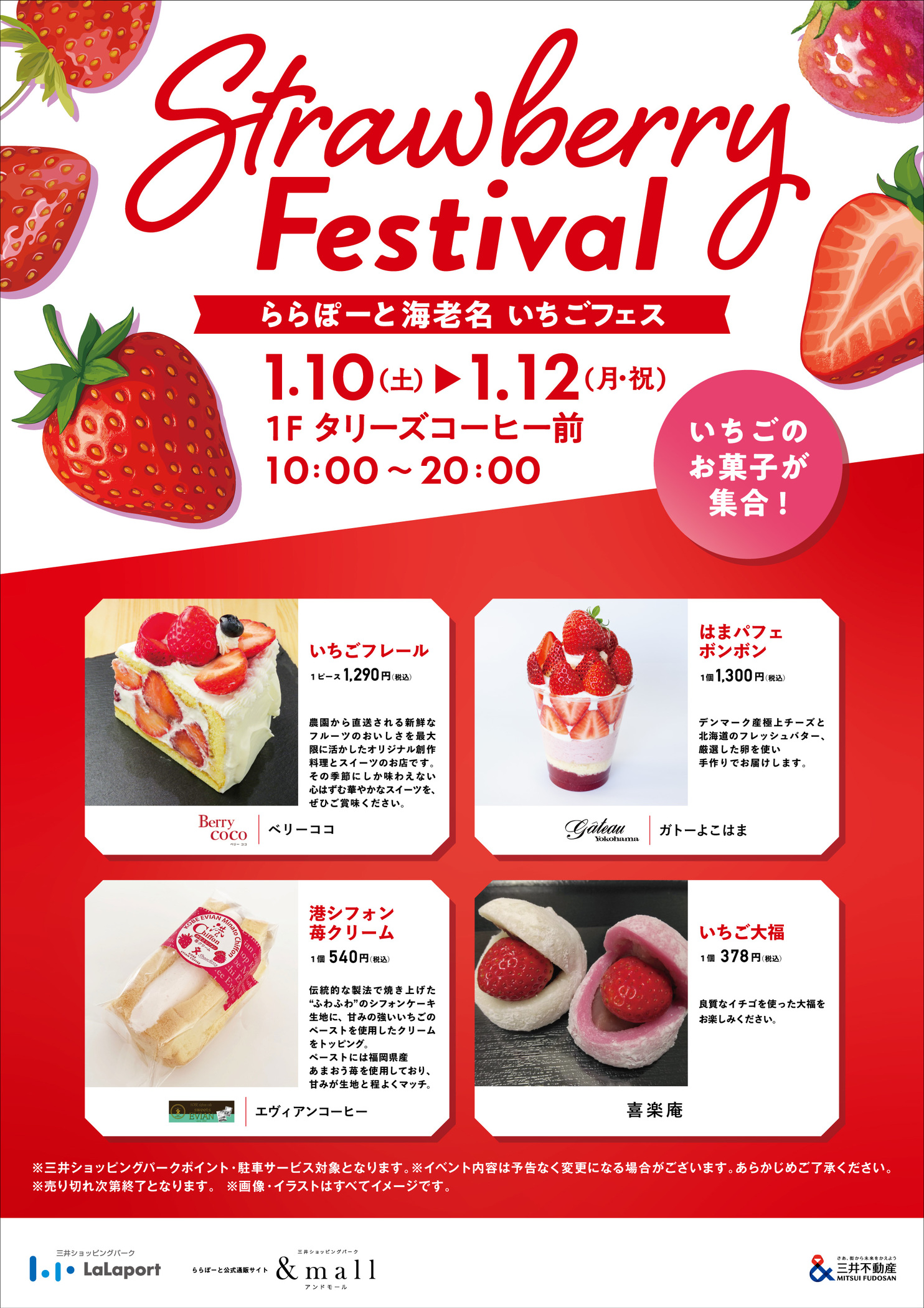 Please take this opportunity to come to LaLaport EBINA and enjoy the strawberry sweets at each store ^^