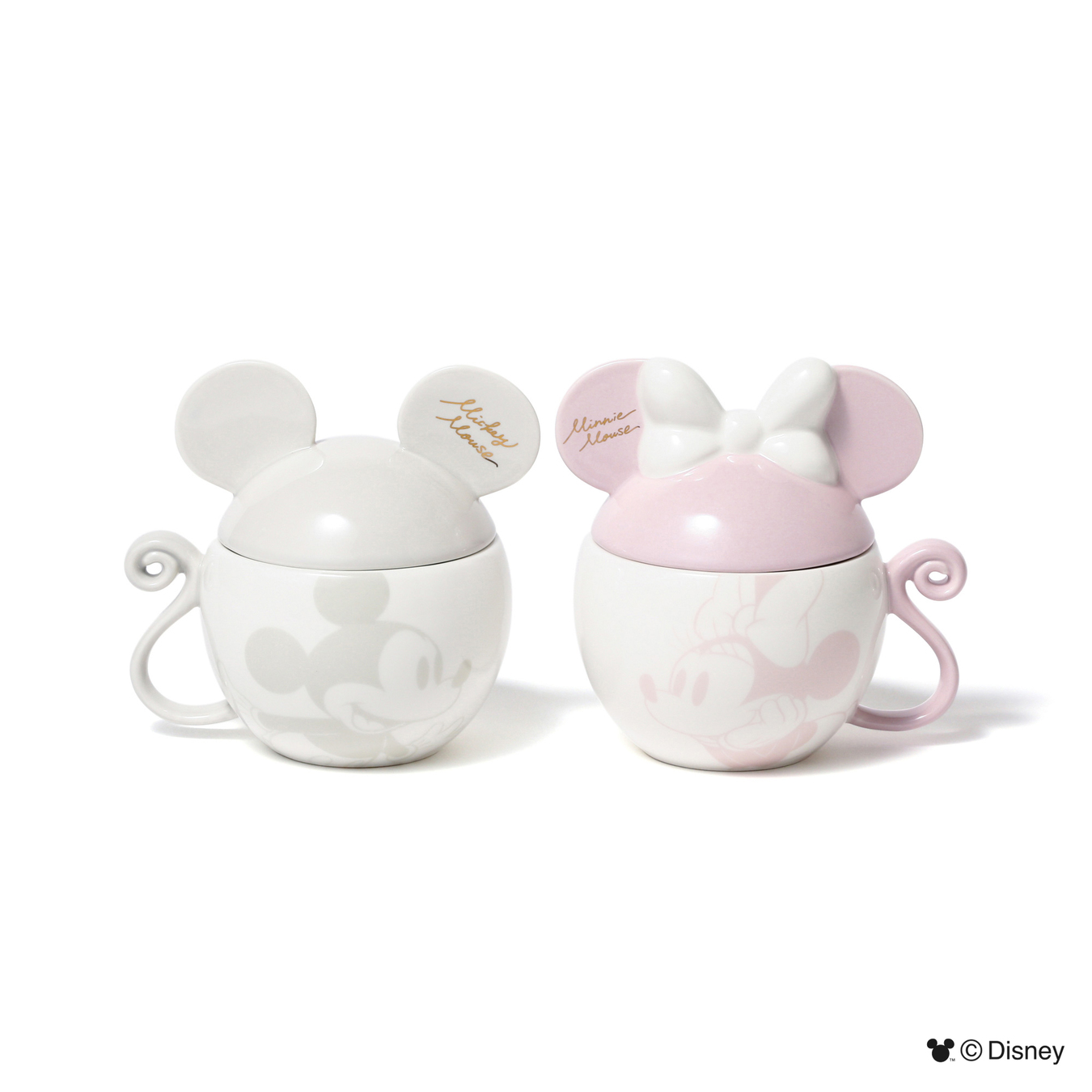 ミッキーマウスとミニーマウスの立体的なモチーフがたまらなくキュートなマグカップセットです。