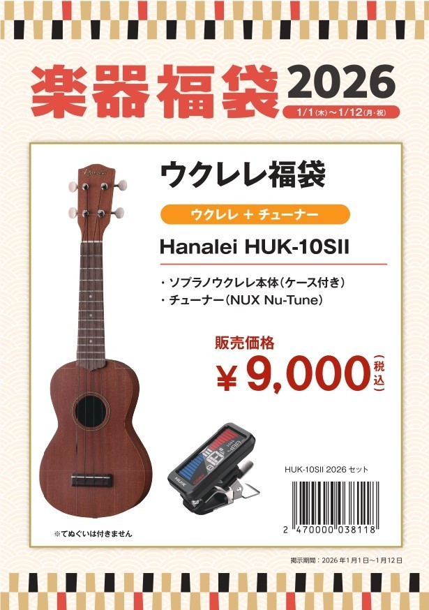 ウクレレ福袋(Hanalei/HUK-10SⅡ)2026年1月1日(木) ~1月12日(月祝)まで