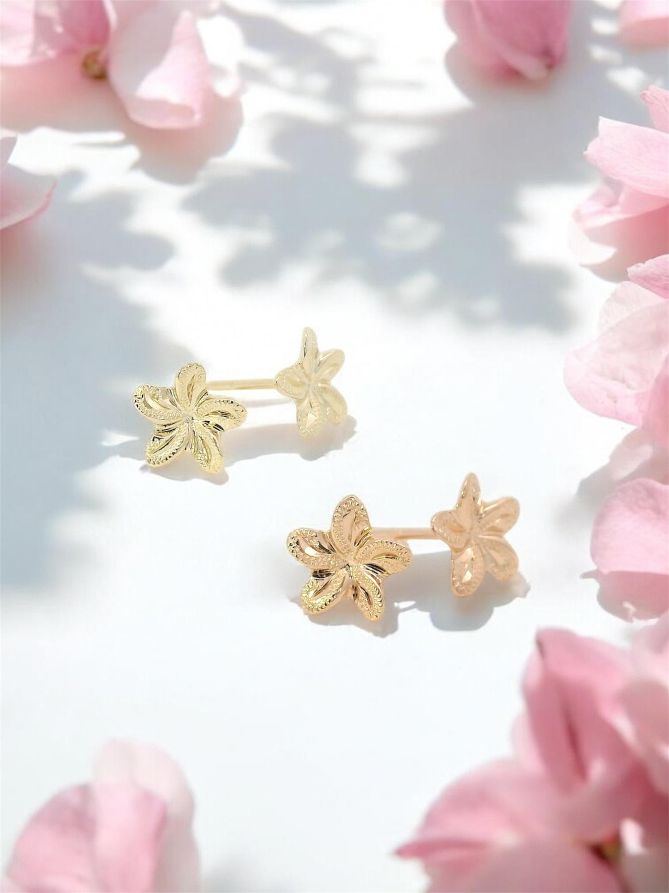 [K10YG/PG Plumeria Milo Stud Earrings]