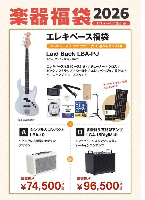 Electric Bass Lucky Bag (Laid Back/LBA-PJ) January 1st (Thursday) to January 12th (Monday, holiday), 2026