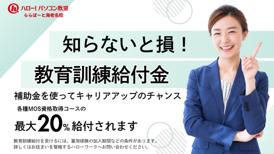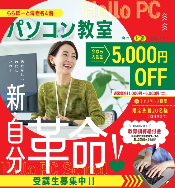 Hello! PC Kyoushitsu is an "individual learning" type of classroom where anyone can improve their skills at a pace that suits them, regardless of age or purpose, from seniors who are completely new to computers, to housewives who want to use computers more conveniently, to company employees who need it for work, to students seeking qualifications, and those looking to change jobs.