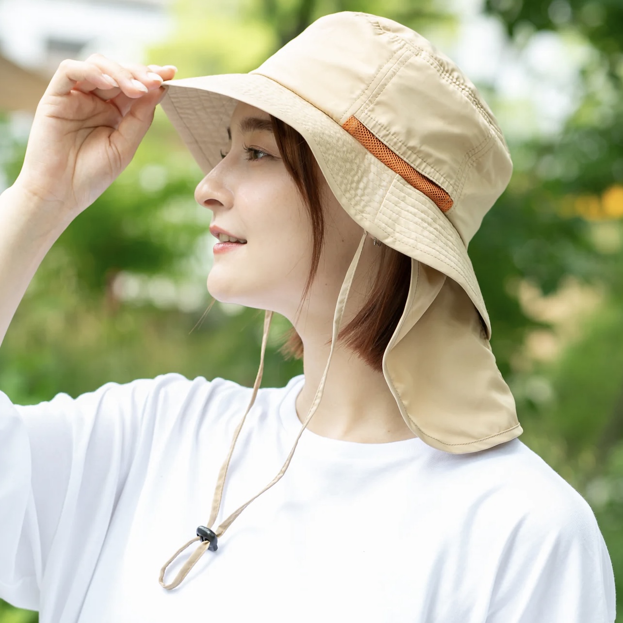 首やけ防止の取り外し可能なマントもついてUV対策もバッチリ!柔らかい素材感でコンパクトに折りたたんでの持ち運びにも便利です。
