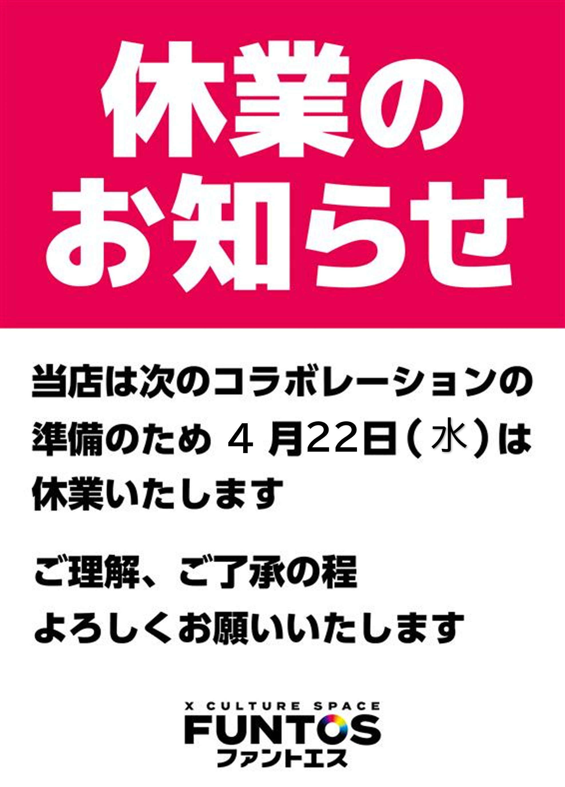 Our store will be closed on Wednesday, April 22nd, to prepare for our next collaboration.