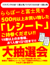 - ソフトバンク/ワイモバイルららぽーと富士見!レシート大抽選会!