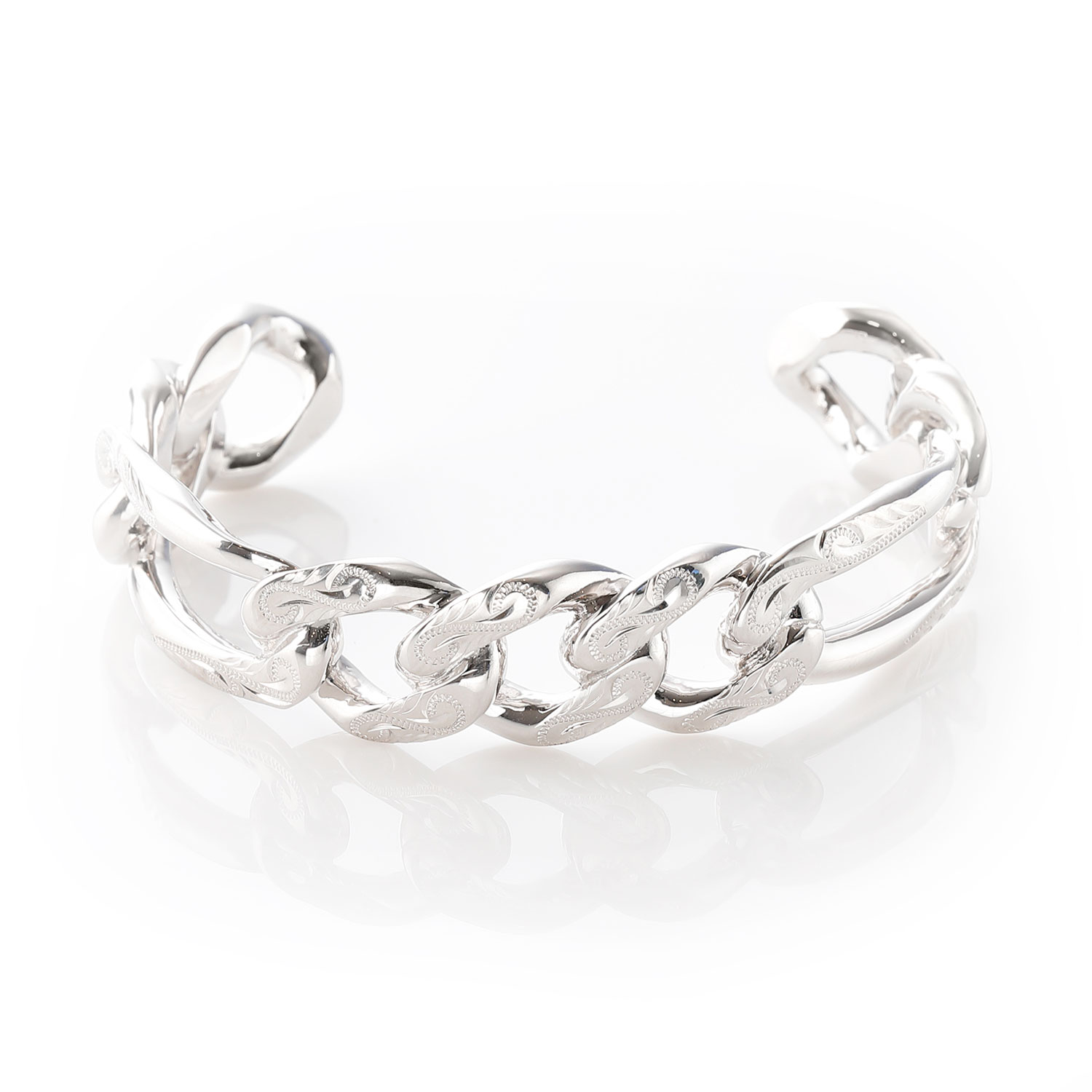 - A striking chain art cuff bangle that embodies bonds