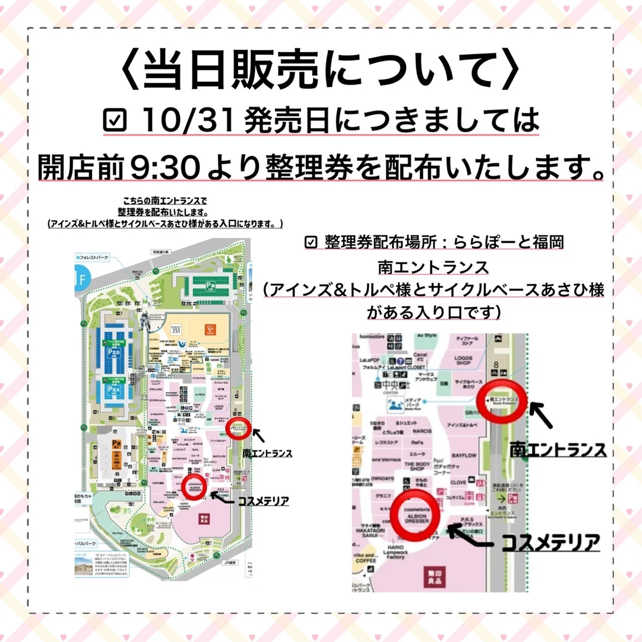 Also, on the first day of sales, numbered tickets will be distributed from 9:30am before the store opens.