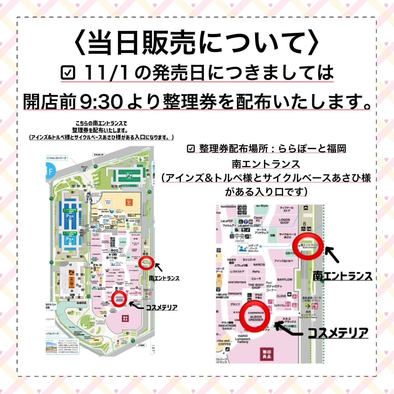 Also, on the first day of sales, numbered tickets will be distributed from 9:30am before the store opens.