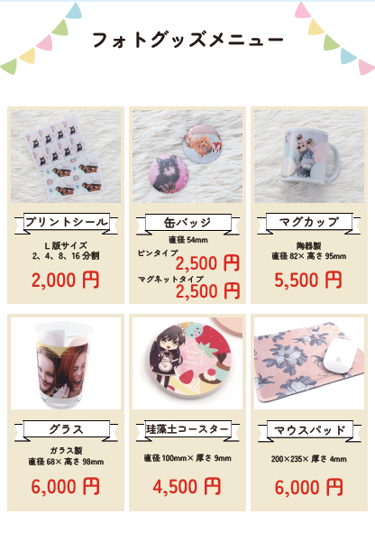 Participation fee: Free photography fee. Please purchase photo goods worth 10,000 yen or more (tax included).