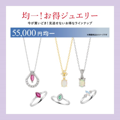 Colored gemstone jewelry at a flat rate of 55,000 yen, and precious metal jewelry,