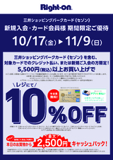 - <Right-on限定>三井ショッピングパークカード《セゾン》会員対象!お買い上げ金額からレジにて10%OFF!