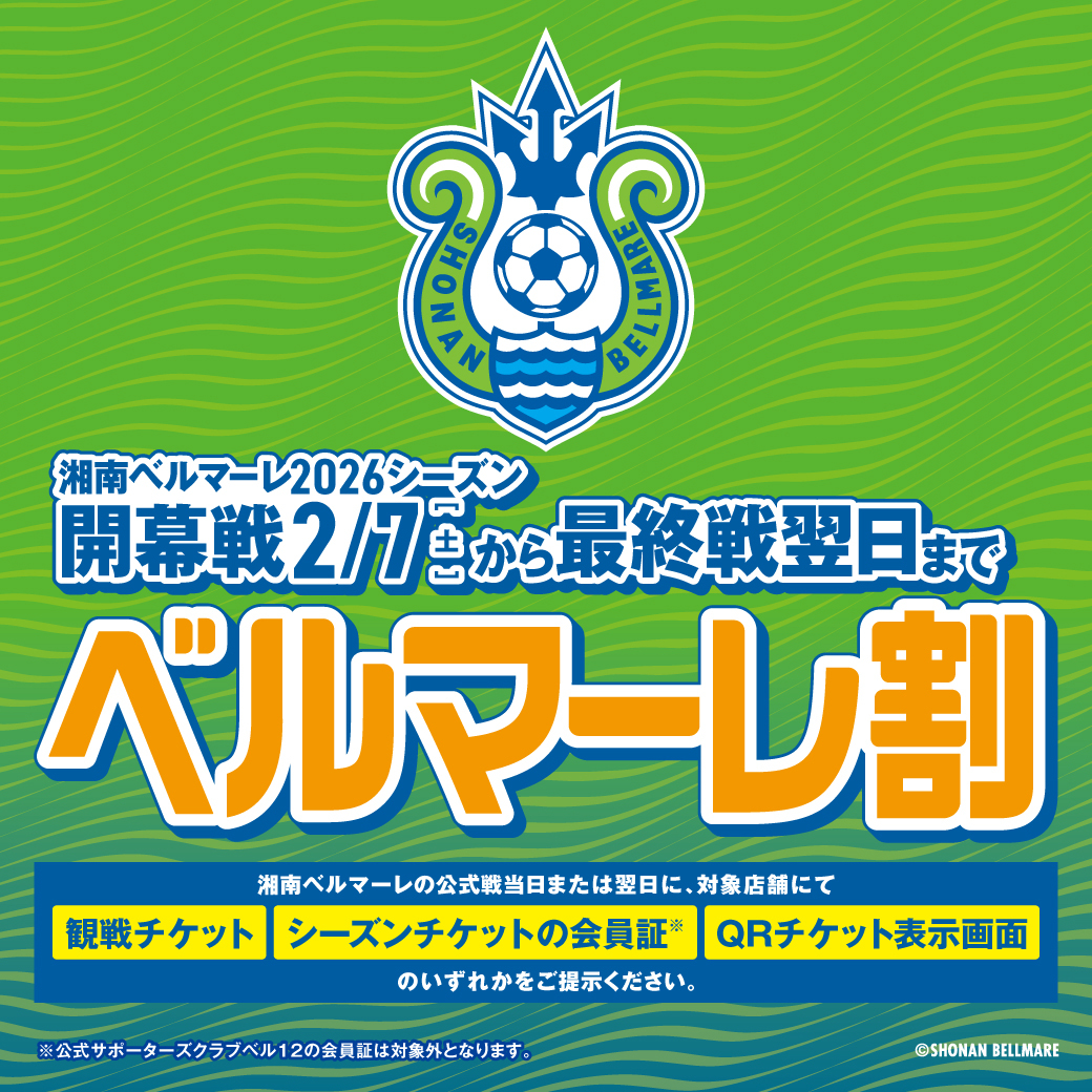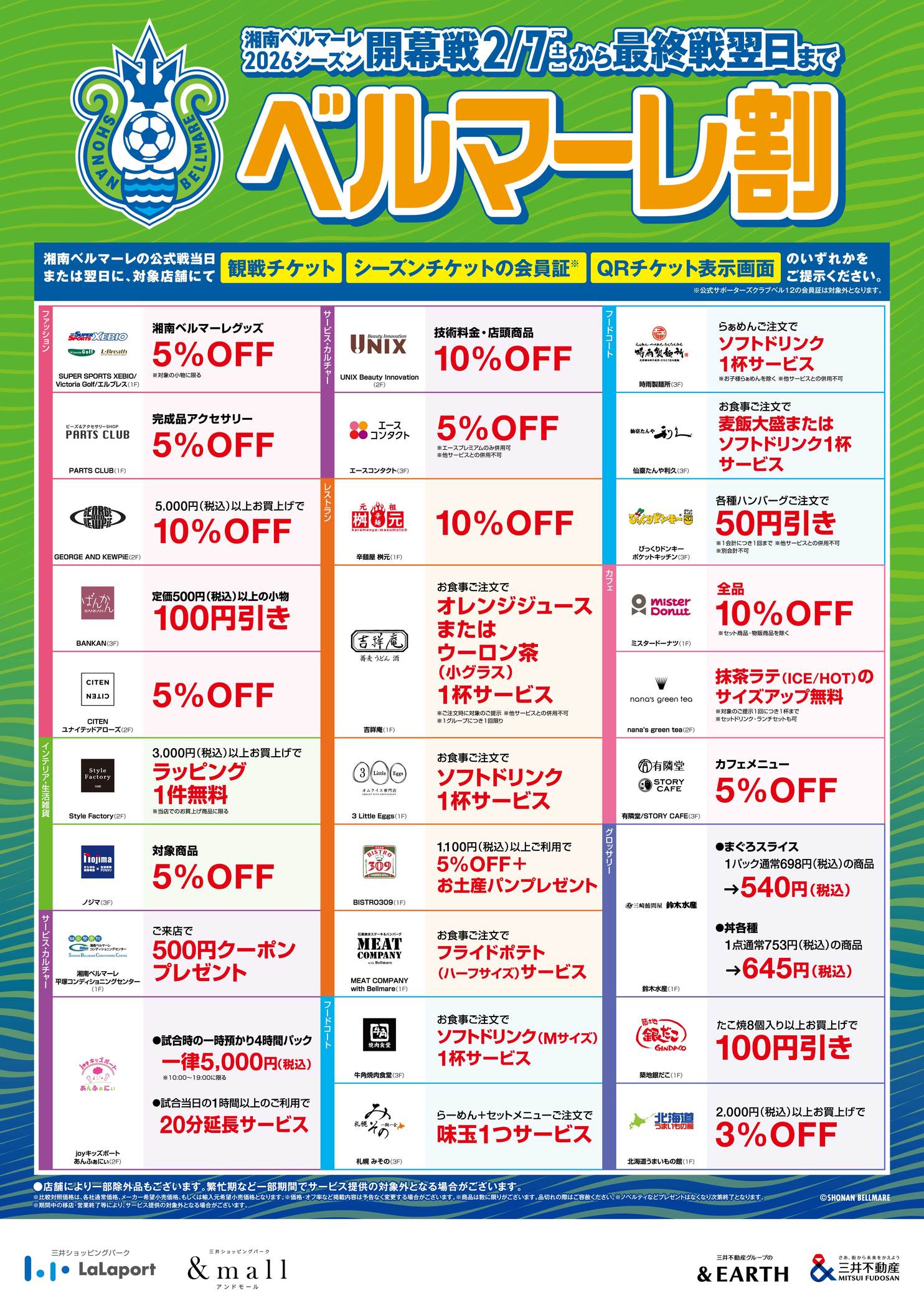 - Come support your team at LaLaport SHONAN HIRATSUKA! 2026 Season "Bellmare Discount"